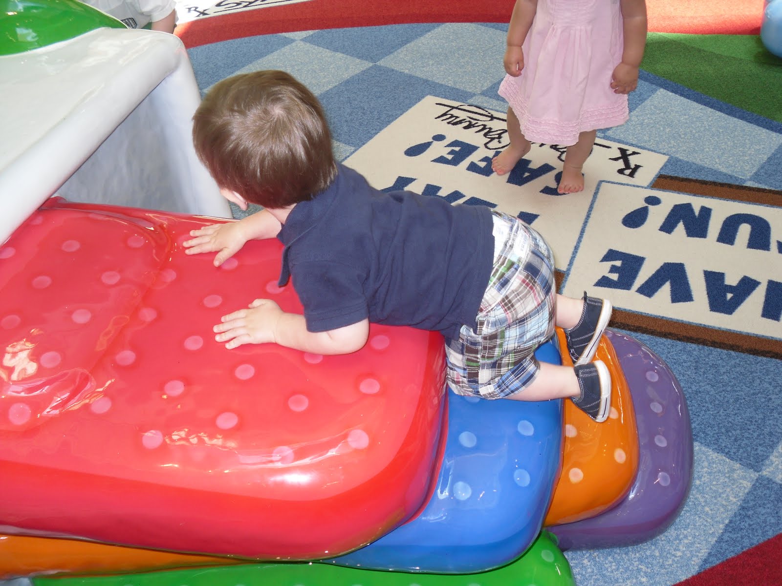 He picks up a new word everyday! My parents faces light up every time Chase says Nonna or Papaw and he even surprised us all by saying Jenna a few times this afternoon! His vocabulary now includes, momma, daddy, nonna, papaw, papa, dog, suck, bubble, jump, drink, shoe, uh oh, ball, car and a few more I can't seem to remember right now.